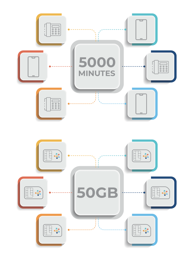 Une limite de voix et données assignée qui peut être partagée entre plusieurs utilisateurs et SIM.