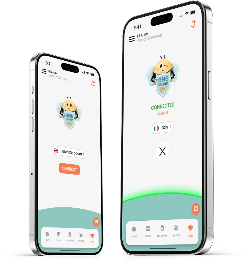 BNESIM eSIM으로 안전하고 암호화된 연결을 즐기세요. 데이터를 절약하기 위해 공용 Wi-Fi에 연결할 때는 BNE Guard VPN으로 개인정보를 보호하세요.