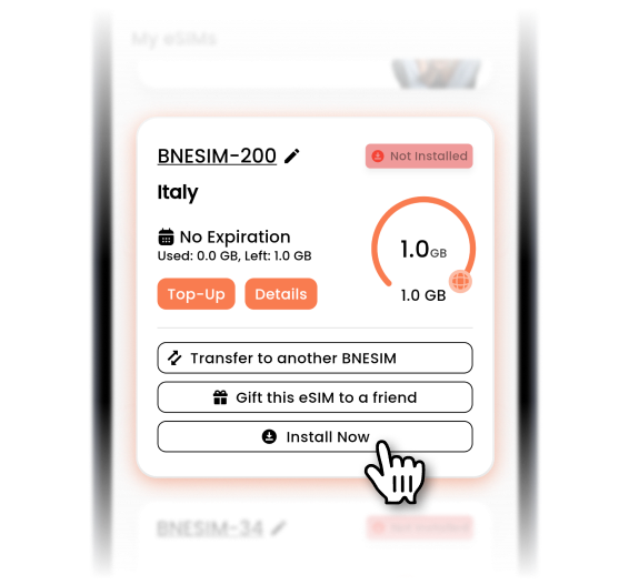 새로운 나라에 도착하는 것을 상상해 보세요. 로컬 SIM은 활성 상태를 유지하고, BNE eSIM이 데이터를 처리합니다. SIM 교체 없이, 두 번째 폰 없이, 즉각적인 연결만 있습니다.